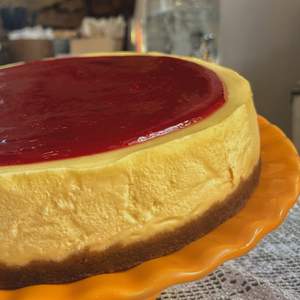 Base de crumble crujiente, crema de queso suave, cubierto con una capa de jugosa mermelada de frambuesa. Imperdible
