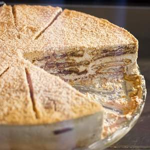 Un clásico portugués con galleta Maria aromatizada en café y cubierta con nata montada. Un best seller de toda la vida.